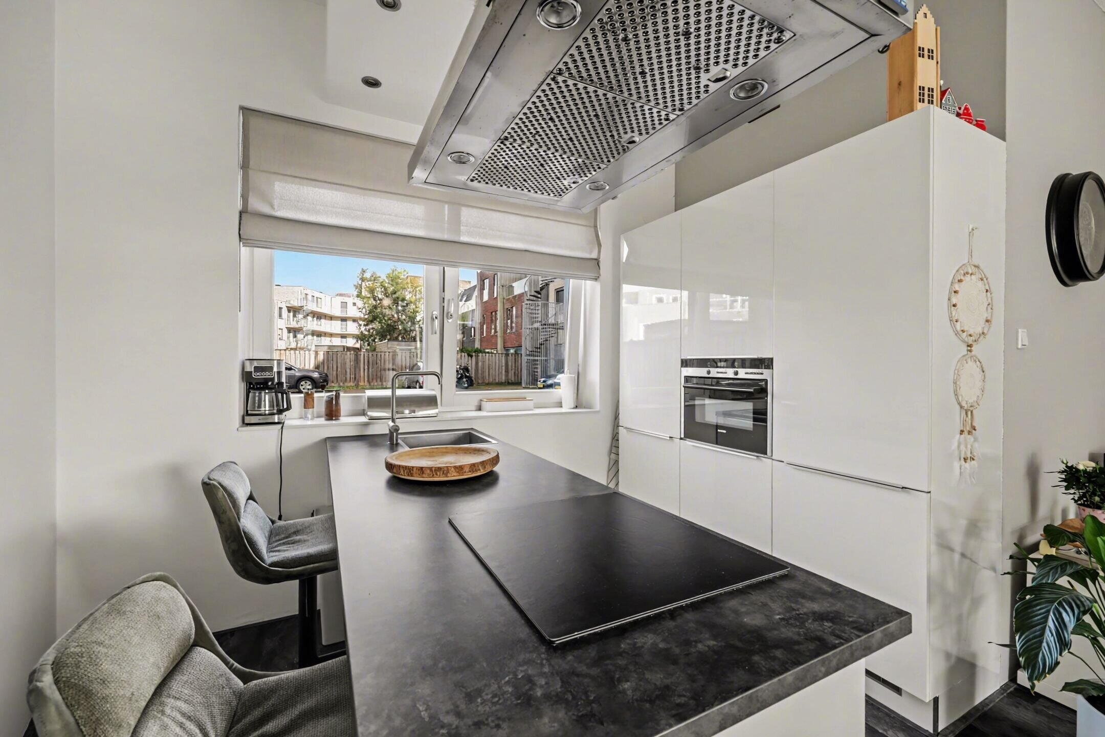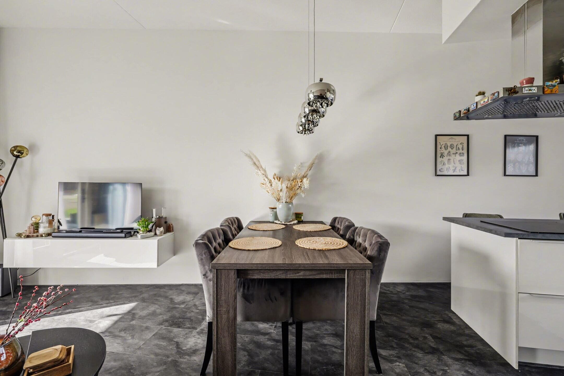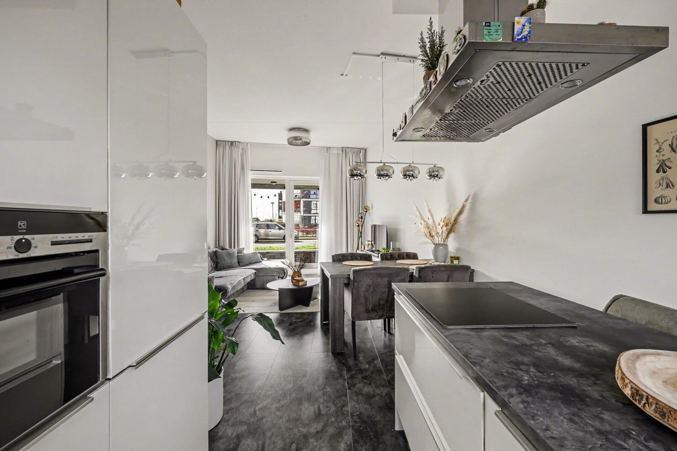 De open keuken sluit naadloos aan op de woonkamer en is modern uitgevoerd. De keuken beschikt over diverse inbouwapparatuur, waaronder een 4-pits inductiekookplaat, vaatwasser, koel-vriescombinatie en een combi oven/magnetron. Naast de keuken is voldoende ruimte voor een gezellige eethoek waar je comfortabel kunt tafelen.
