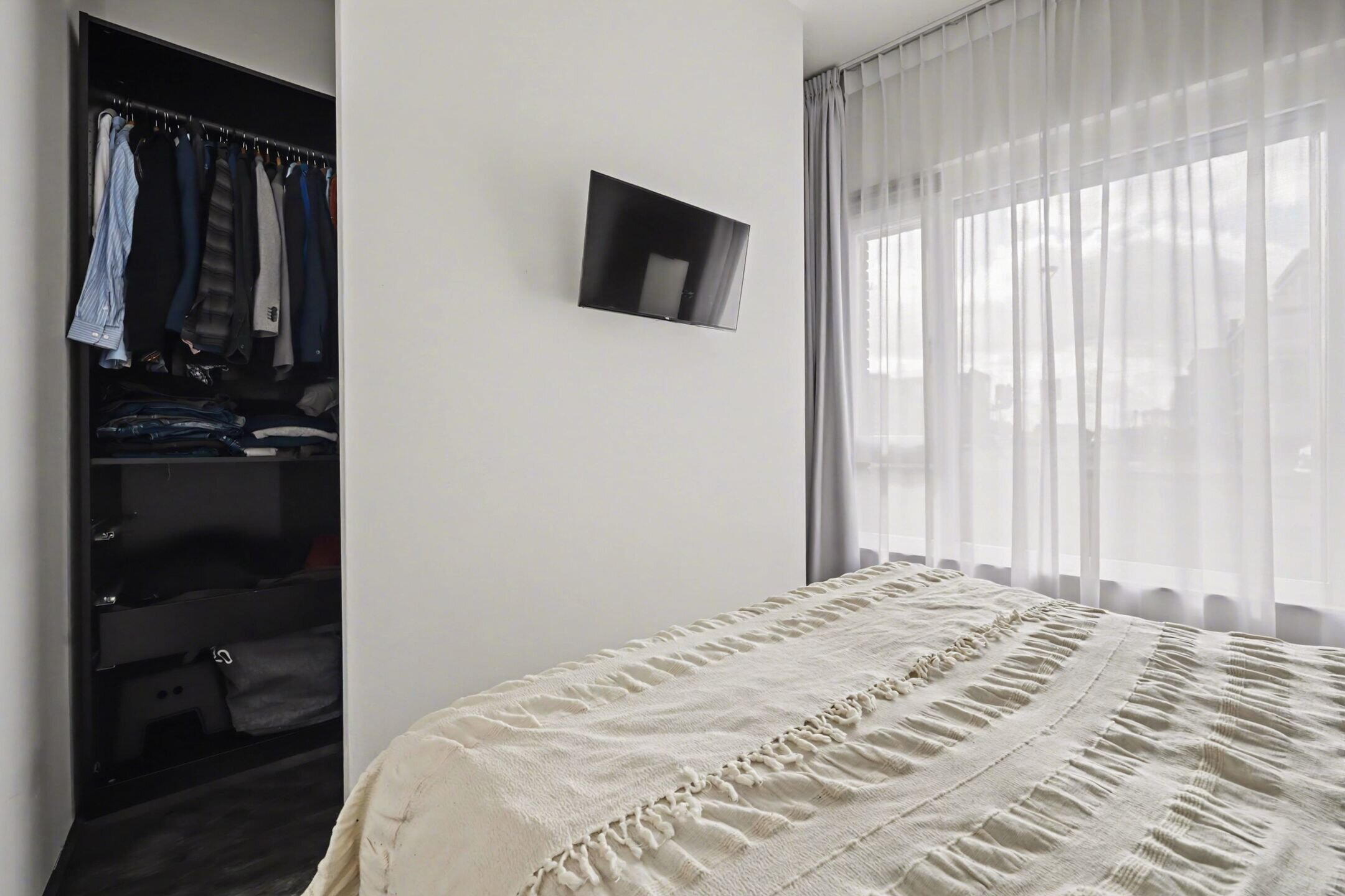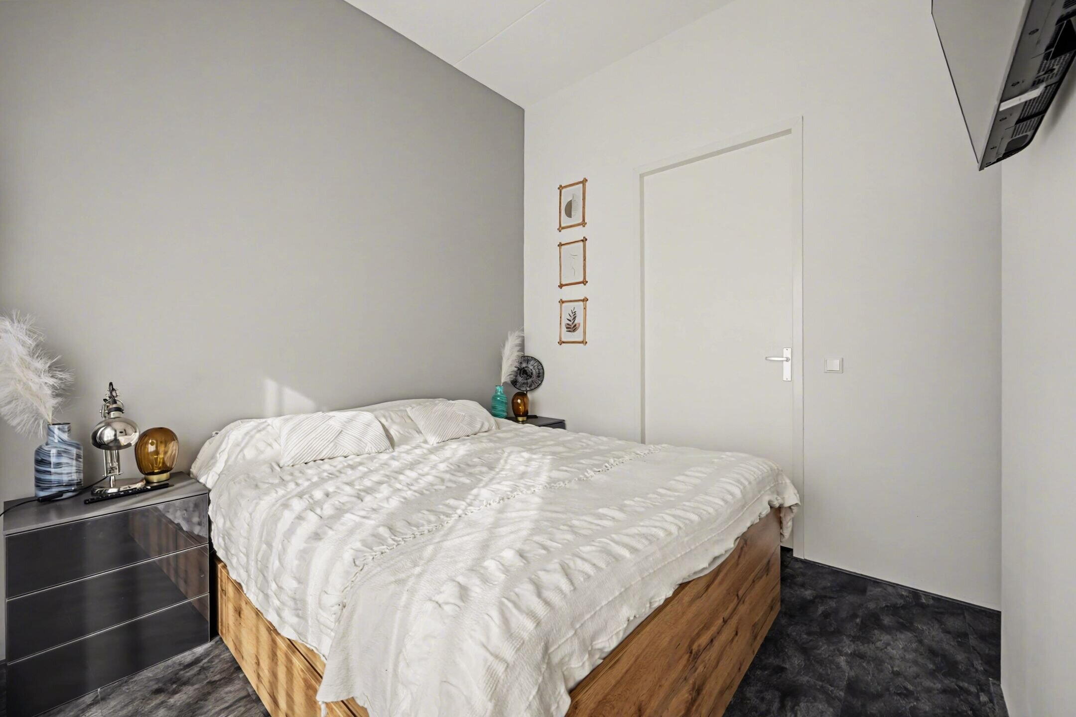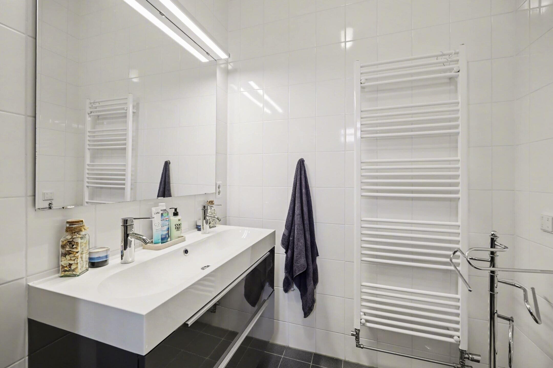 Het appartement beschikt over twee netjes afgewerkte slaapkamers, beide voorzien van een prettige lichtinval. De kamers zijn flexibel in te richten als hoofdslaapkamer, werkkamer of logeerkamer. De badkamer is modern betegeld en uitgerust met een ruime inloopdouche en een dubbele wastafel met meubel. Daarnaast is er een praktische aparte wasruimte aanwezig met aansluitingen voor de wasmachine. Vanuit de woonkamer bereik je het balkon, een fijne plek om buiten te zitten en te genieten van het zonnetje. Dankzij de ligging op het zuidwesten kun je hier heerlijk ontspannen in de middag en avond.